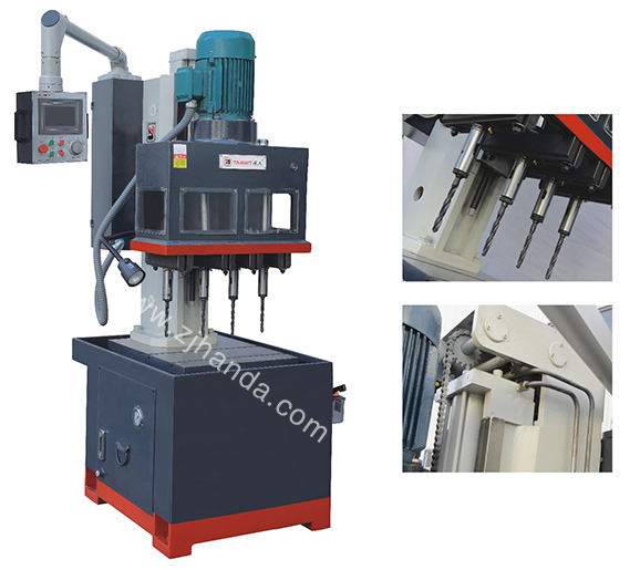 達人牌ZK5223X4A1立式多軸鉆床(采用多軸同步加工),是我公司匯集國內(nèi)外多軸鉆床研制開發(fā)推出的第二代全自動立式可調(diào)多軸鉆床,獲得5項專利,120項技術(shù)改進,20000小時的樣機試驗。最多可同時鉆6個孔,鉆孔范圍¢3-¢23,孔距可任意調(diào)整,也可根據(jù)客戶要求制作固定式多軸導(dǎo)板。切削HRC35以下黑色金屬,切削鑄鐵及有色金屬時更能發(fā)揮它的優(yōu)點,適應(yīng)于大批量零件加工。ZB5223*4A1立式多軸鉆床因其顯著提高工件加工效率、節(jié)省人力成本的特點,產(chǎn)品一經(jīng)推出,即引起熱烈的市場反應(yīng)。為您省力、省錢、省時,是達人多軸鉆床的使命!
