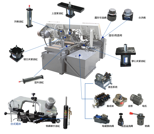 2014年山東最大的一家?guī)т彺补窘?jīng)朋友介紹,并查看了我們的公司網(wǎng)站等相關(guān)信息后,聯(lián)系到我們,希望我們能為他們設(shè)計定做帶鋸床液壓系統(tǒng)配件。因為他們公司帶鋸床主要以出口為主,質(zhì)量要求高,但當(dāng)?shù)夭少彽囊簤号浼|(zhì)量并不是很穩(wěn)定,給他們售后也帶來了諸多不便。而他們主要的質(zhì)量問題就出在升降油缸。帶鋸床液壓缸中,最關(guān)鍵的就是升降液壓缸,如材料或工藝沒達到要求或者安裝不注意出現(xiàn)問題,則升降機構(gòu)會出現(xiàn)內(nèi)泄露機器自動會下降現(xiàn)象,抖動現(xiàn)象等。缸筒材料若是未經(jīng)過珩磨或滾壓處理的無縫鋼管,內(nèi)壁光潔度不夠,會產(chǎn)生活塞、缸筒、密封件配合不良等各種問題產(chǎn)生。而壁厚很薄的缸筒,當(dāng)液壓油溫高了,缸筒容易熱脹變形,導(dǎo)致漏油,使用壽命較低;活塞桿作為油缸主要原材料之一,行業(yè)標準鍍鉻層厚度是2~3絲,部分油缸廠家為降低成本,會使用1絲不到的活塞桿,短期看不到問題,但是大大降低油缸使用壽命。