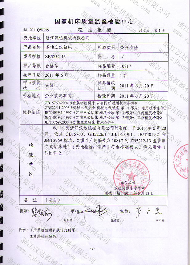 我公司研發(fā)制造的達(dá)人牌多軸立式鉆床,通過了國家機(jī)床質(zhì)量監(jiān)督檢驗中心的質(zhì)量檢驗,