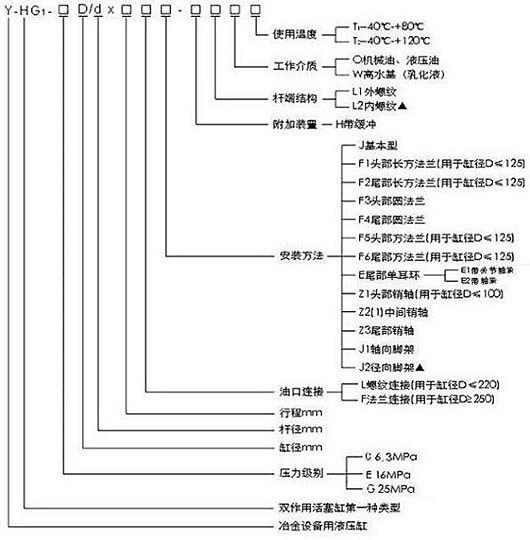 Y-HG1系列冶金設備用液壓缸為雙作用活塞缸,缸徑一般在40~320mm范圍內(nèi),工作壓力<=16MPA,其基本參數(shù),包括缸徑、桿徑、行程、油口尺寸。